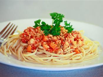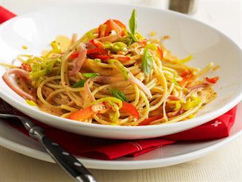 fettuccini tossed with fresh grape tomatoes and grilled zucchini in a flavorful basil cream sauce, topped with a fire-grilled salmon filet and fresh basil pesto.
